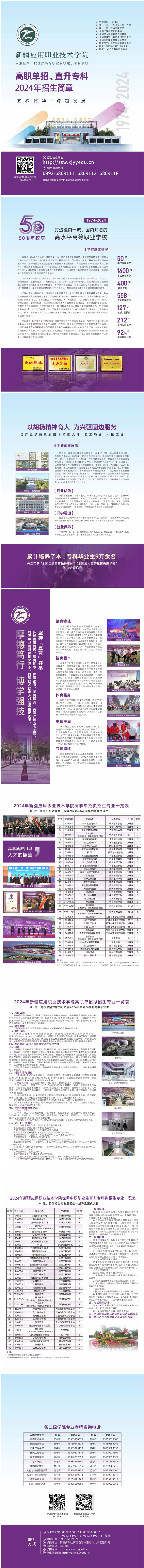新疆应用职业技术学院高职单招、直升专科2024年招生简章